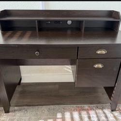 Home desk With Built In Outlets And USB Ports, Wood Grain Brown, Like New, Gently Used $105Santa Rosa Va, CA