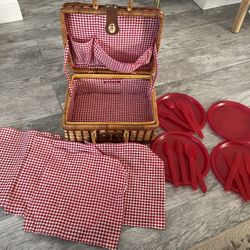 Elizabeth Arden Vintage Wicker Picnic Basket Dish Set Red Woven Rattan$25Calabasas, CA