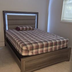 Queen Size Bed With LED Lights Headboard With Box Spring And Mattress Included$450West Hills, CA