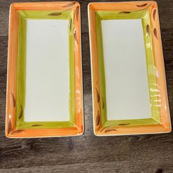 Set Of 2 Ceramica Serving Plates White Green Orange 14.25x7.75in$15Ventura, CA