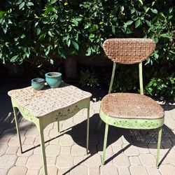 Vintage Outdoor Wicker Steel Chair and Table Set $175Oxnard, CA