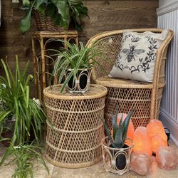 Boho Wicker Rattan Vintage Barrel Peacock Chair Side Table Ottoman Woven Set Jungalow $395Camarillo, CA