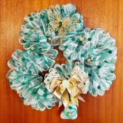 Handmade St Patricks Day Green Shamrock Lucky Clover Wreath Golden Butterfly Gold Bow$45Fillmore, CA