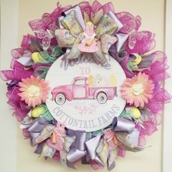 Handmade Happy Easter Wreath Bunny Rabbit Eggs Carrots Flowers Spring Pastels$85Fillmore, CA