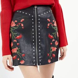 NWOT Floral Embroidered Studded Zip Up Black Faux Leather Pleather Skirt XL 16$18Fillmore, CA