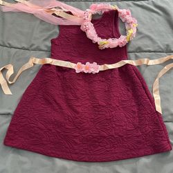 Pretty Dress For Toddler Girl 4T Burgundy With Cherry Blossom 🌸 Belt Sash And Head Crown Accessories For Ages 3-5. Pick Up Only In Torrance 90505$13Torrance, CA