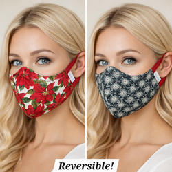Handmade Ladies Reversible Face Mask in Red Poinsettias and Black Floral$15Fillmore, CA
