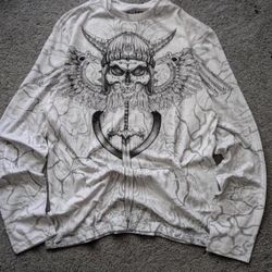 Y2K White long sleeve shirt with skull design, $20Oxnard, CA