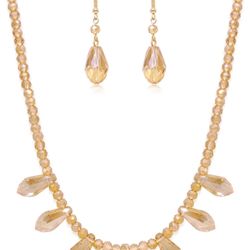 Cryshimmer Glass Bead Necklace Earrings for Women 16K Gold Plated Dainty Crystal Beads Collar Necklace Dangle Earrings Costume Jewelry Set for Wedding$10Simi Valley, CA