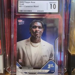2025 Cameron Ward Topps Now Draft Rookie card, #D1 RC graded GEM MINT 10 by (CGC)$55Ventura, CA