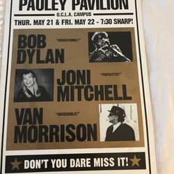 Original and Rare poster featuring Bob Dylan and Joni Mitchell at UCLA in 1998, along with Van Morrison$200Simi Valley, CA
