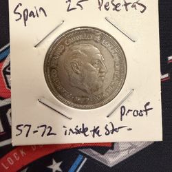 Spain 25 Pesetas 57-72 Inside The Star -Proof$35Simi Valley, CA
