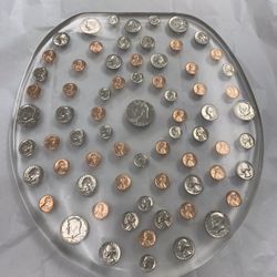 1970’s Lucite Coin toilet seat and cover. VERY COOL! In excellent condition! Great addition to any man cave wall!$195Westlake Village, CA