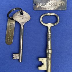 2- Antique/Vintage Brass Skeleton Keys’s W/Brass Tags SCREW ROOM & PUMP ROOM KEY$30Oxnard, CA
