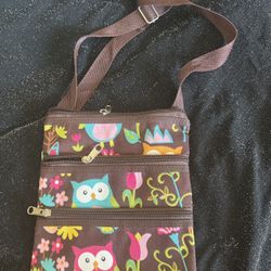 New Without Tags Owls Flowers Crossbody Bag Purse Brown Pink Adjustable Strap Pockets 10” x 7”$5Camarillo, CA