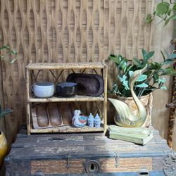 Vintage Boho Bamboo Wood Shelf Woven Tiki Jungalow Plant Book Shelf Stand Dark Brown $195Camarillo, CA