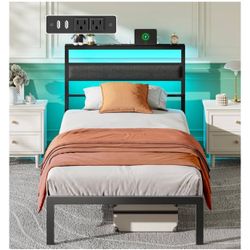 Brand New In The Box- Twin Bed Frames for Kids, Metal Platform Bed Frame Twin Size with Upholstered Headboard, Wood Storage Shelf, Charging Station an$100Agoura Hills, CA