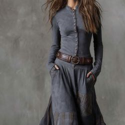 Female Lady's Autumn Vintage Dress, With Checked Patchwork Design, Exudes A Vintage Charm. It Features Pockets, Buttons And A Belt. Ideal As A Christ$18Camarillo, CA