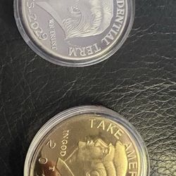 2 Commemorative Trump Coins. Unsure Of Material Content. Brilliant Looking$40Oak View, CA
