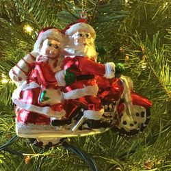 Santa Mrs Claus Motorcycle Metallic Glass Ornaments $25Oxnard, CA