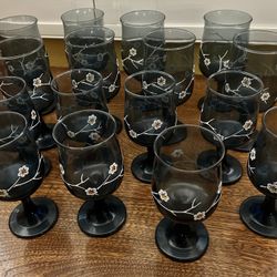 Set of 16 Vintage Libbey Smokey Blue w Dogwood Flowers Stemmed Glasses $40Simi Valley, CA