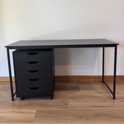 Modern Black Desk + 5-Drawer Rolling Cabinet – Minimal Setup$110Malibu, CA