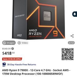 AMD Ryzen 9 7900X - 12-Core 4.7 GHz - Socket AM5 - 170W Desktop Processor$390Santa Rosa Va, CA