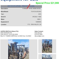 2015 Toyota Warehouse 8,000 Lb Diesel Capacity $21,999San Fernando, CA