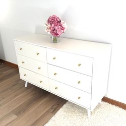 Modern White 6-Drawer Dresser – Staged Furniture from Malibu Mansion Description: Modern 6-drawer dresser from a staged Malibu mansion. Like n$200Malibu, CA