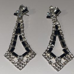 VTG Art Deco Black Clear Rhinestones Triangle Floral Chandelier Pierced Earrings$40Naval Air Station Point Mugu, CA