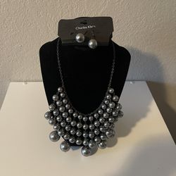 Women’s Charcoal Bib Necklace With Dangled Earrings Jewelry Set$12Naval Air Station Point Mugu, CA
