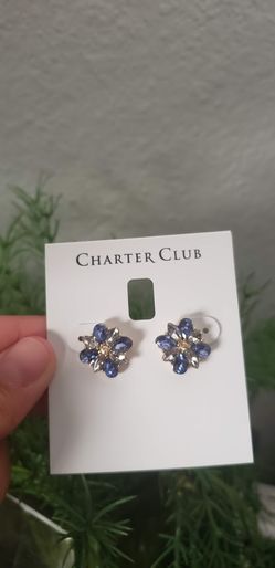 New Charter Club stud Earrings Jewelry Blue glass stones with crystals set in gold toned metal Approx diameter: 3/5" New - never worn $10.$10Ventura, CA