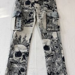 REBEL VENGEANCE Cargo Pants Tapestry Fringe Skull Skeleton Goth Mens 30x32$50Oxnard, CA