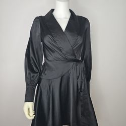 Beautiful Women's Long Sleeve Collared Satin Wrap Dress With Gold Buttons$60Los Angeles, CA