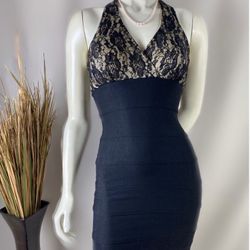 Windsor | Black Sleeveless Overlay Gold Black Lace Bandage Mini Wrap Dress Size:3 $30Riverside, CA