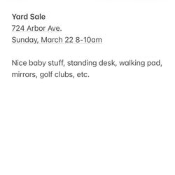 Yard Sale! Baby, home office, golf clubs, and more$0Ventura, CA