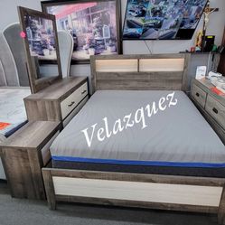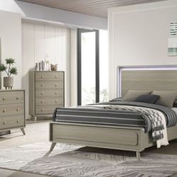 ✅️"4 pc two tone grey finish wood slatted storage headboard with lights queen bedroom set"✅️✅️ Tall chest & Mattress not included✅️✅️✅️$578Pomona, CA