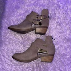 Cute Peephole Buckle And Wooden Heel Beige Boot$5Agoura Hills, CA