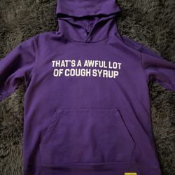Purple cotton hoodie with "That's a Awful Lot of Cough Syrup" size medium$100Santa Paula, CA