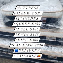 ✨Mattress Pillow Top All Sizes ✨ ☑️ 12” inches tall 🟦All sizes 🛏💤 🟠Queen sizes $199 🟡Full sizes $180 🟢Twin sizes $145 🔵Cal king $330 🟣E. King $199Westlake Village, CA