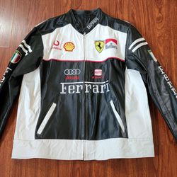 Vintage Ferrari Racing Team F1 White Black Red Embroidered Logos Leather Jacket Sz XXL$200Oxnard, CA