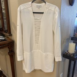IRO Women White Odriane Front Cross Fold Up Cuffs Lined Mini Dress Size 38$125Fountain Valley, CA