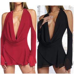 Hilinker Women's Sexy Deep V Neck Bodycon Dress Long Flare Sleeve Mini Party Dresses$30Whittier, CA