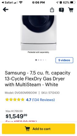 Samsung 7.5 cu ft Stackable Steam Cycle Electric Dryer$550Ventura, CA