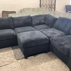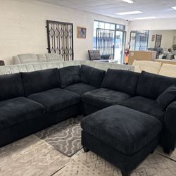 New 99x99 Black Corduroy Sectional Couch With Ottoman / Free Delivery $850Ventura, CA