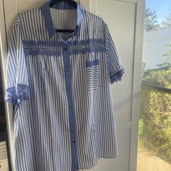 Plus Size 3XL Blue and White Collar Blouse Button Up Short Sleeve$10Camarillo, CA