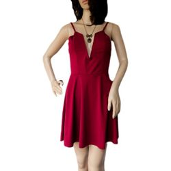 NWoT Deep Plunge V Neck Sexy Mini Skater Dress in Burgundy 4 6 S$15Fillmore, CA