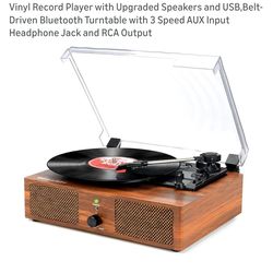 Vinyl Record Player with Upgraded Speakers and USB,Belt- Driven Bluetooth Turntable with 3 Speed AUX Input Headphone Jack and RCA Output$50Oxnard, CA