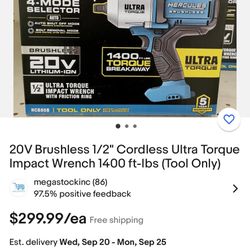 20V Brushless 1/2" Cordless Ultra Torque Impact Wrench 1400 ft-lbs (Tool Only)$130Oxnard, CA