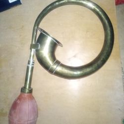 antique circular brass car horn with a rubber bulb.$25Russell, KS